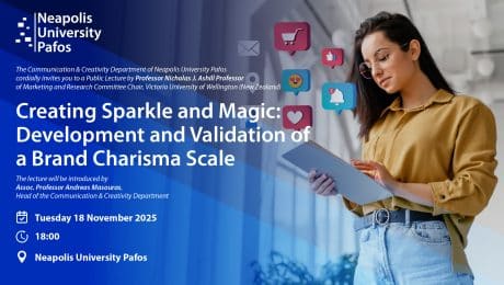 The Department of Communication and Creativity of Neapolis University Pafos is organising a public lecture titled “The Allure of Brands”, to be held on Tuesday,...