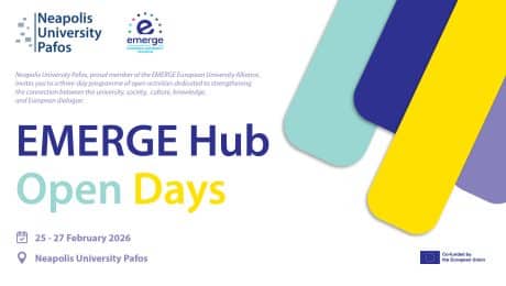 Neapolis University Pafos, as a member of the EMERGE European University Alliance, is organising the EMERGE Hub Open Days, a three-day programme of open activities...