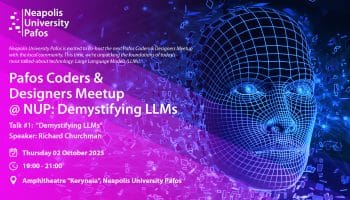 Neapolis University Pafos (NUP), in collaboration with the Pafos Coders & Designers community, is pleased to announce the upcoming Pafos Coders & Designers Meetup, an...