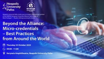 On 23rd of October 2025, Neapolis University Pafos will host the open event “Beyond the Alliance: Micro-credentials & best practices from around the world”, as...