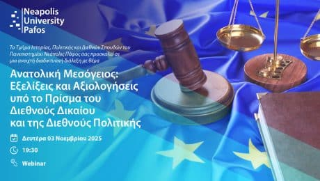 Το Τμήμα Ιστορίας, Πολιτικής και Διεθνών Σπουδών του Πανεπιστημίου Νεάπολις Πάφος διοργανώνει τη Δευτέρα, 3 Νοεμβρίου 2025, στις 19:30, ανοιχτή διαδικτυακή διάλεξη με τίτλο «Ανατολική...