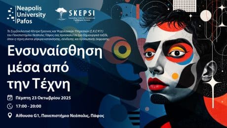 Το Συμβουλευτικό Κέντρο Έρευνας και Ψυχολογικών Υπηρεσιών (Σ.Κ.Ε.Ψ.Υ.) του Πανεπιστημίου Νεάπολις Πάφος διοργανώνει την Πέμπτη 23 Οκτωβρίου 2025, από τις 17:00 έως τις 20:00, βιωματικό...