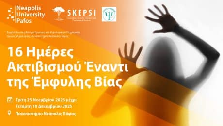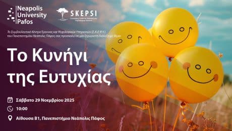 Το Συμβουλευτικό Κέντρο Έρευνας και Ψυχολογικών Υπηρεσιών (Σ.Κ.Ε.Ψ.Υ.) του Πανεπιστημίου Νεάπολις Πάφος διοργανώνει το Σάββατο, 29 Νοεμβρίου 2025, στις 10:00 π.μ. στην Αίθουσα Β1 του...