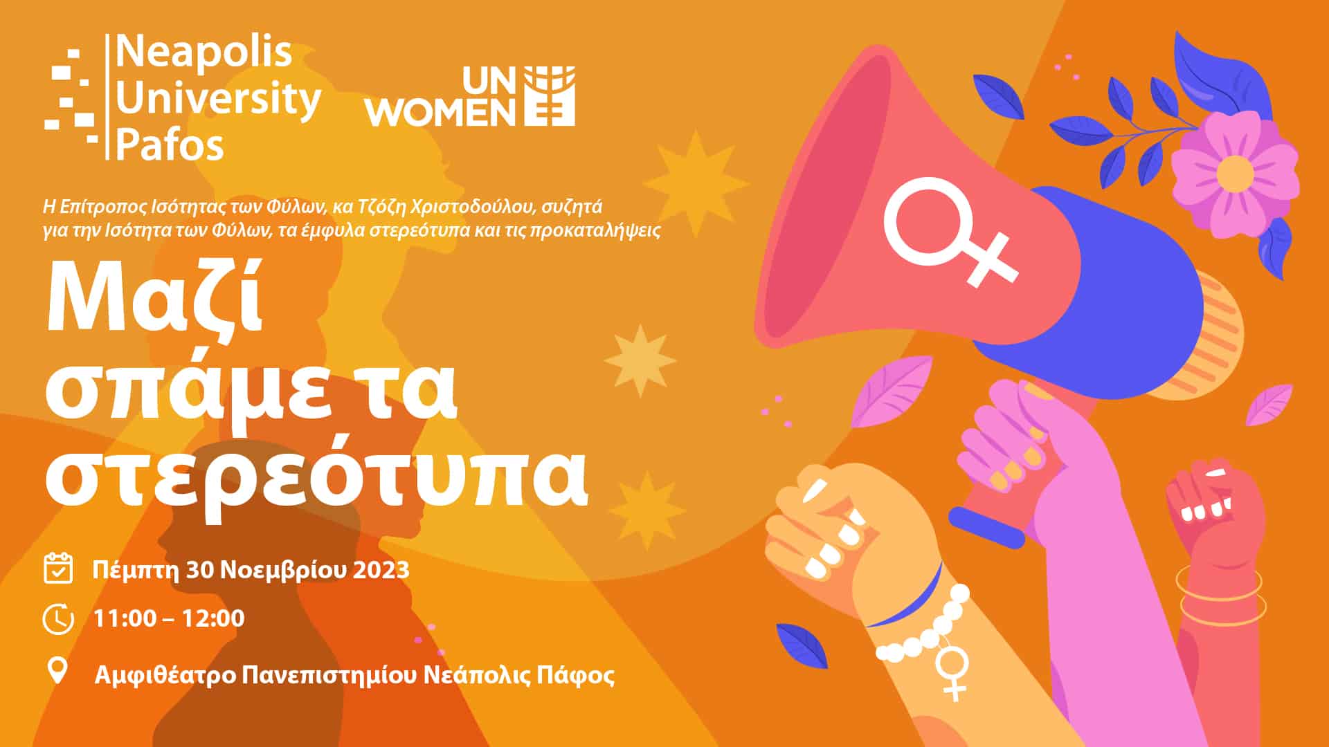 Το Πανεπιστήμιο Νεάπολις Πάφος, ως φορέας ακαδημαϊκής αριστείας, κοινωνικής συνοχής και ανάπτυξης, στοχεύει με τις δράσεις του στην εμπέδωση της ισότητας, της ενσωμάτωσης και στην εξάλειψη των αρνητικών αντιλήψεων και στερεοτύπων έναντι οποιασδήποτε κοινωνικής ομάδας.