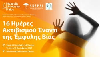 Το Συμβουλευτικό Κέντρο Έρευνας και Ψυχολογικών Υπηρεσιών (Σ.Κ.Ε.Ψ.Υ.) του Πανεπιστημίου Νεάπολις Πάφος διοργανώνει το Σάββατο, 29 Νοεμβρίου 2025, στις 10:00 π.μ. στην Αίθουσα Β1 του...