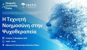 Το Συμβουλευτικό Κέντρο Έρευνας και Ψυχολογικών Υπηρεσιών (Σ.Κ.Ε.Ψ.Υ.) του Πανεπιστημίου Νεάπολις Πάφος διοργανώνει την Τετάρτη, 12 Νοεμβρίου 2025, στις 18:00, διάλεξη ανοιχτή στο κοινό με...
