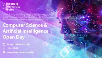 Το Τμήμα Πληροφορικής του Πανεπιστημίου Νεάπολις Πάφος διοργανώνει Open Day για το προπτυχιακό πρόγραμμα BSc in Computer Science & Artificial Intelligence (CSAI), την Κυριακή, 29...