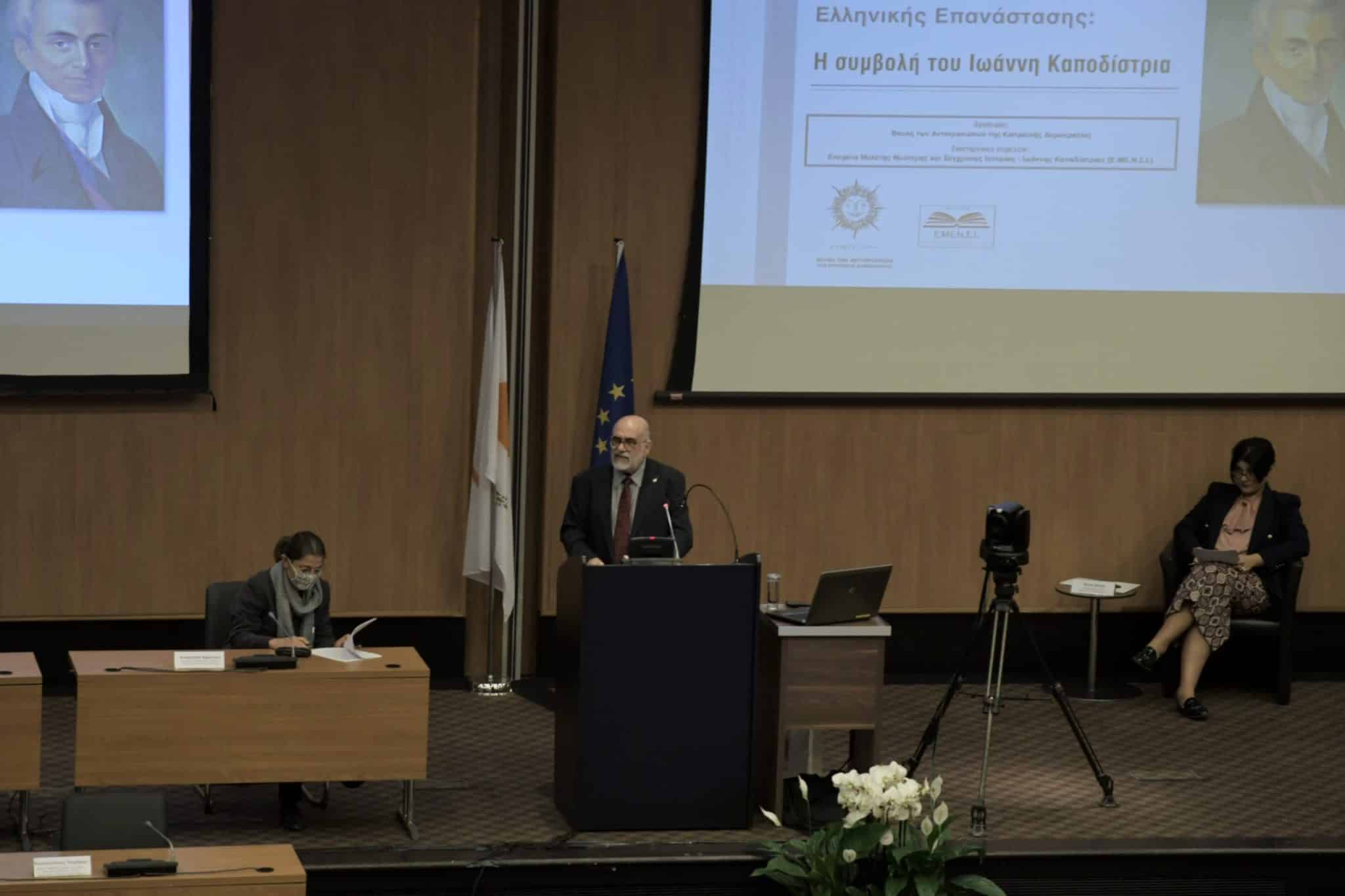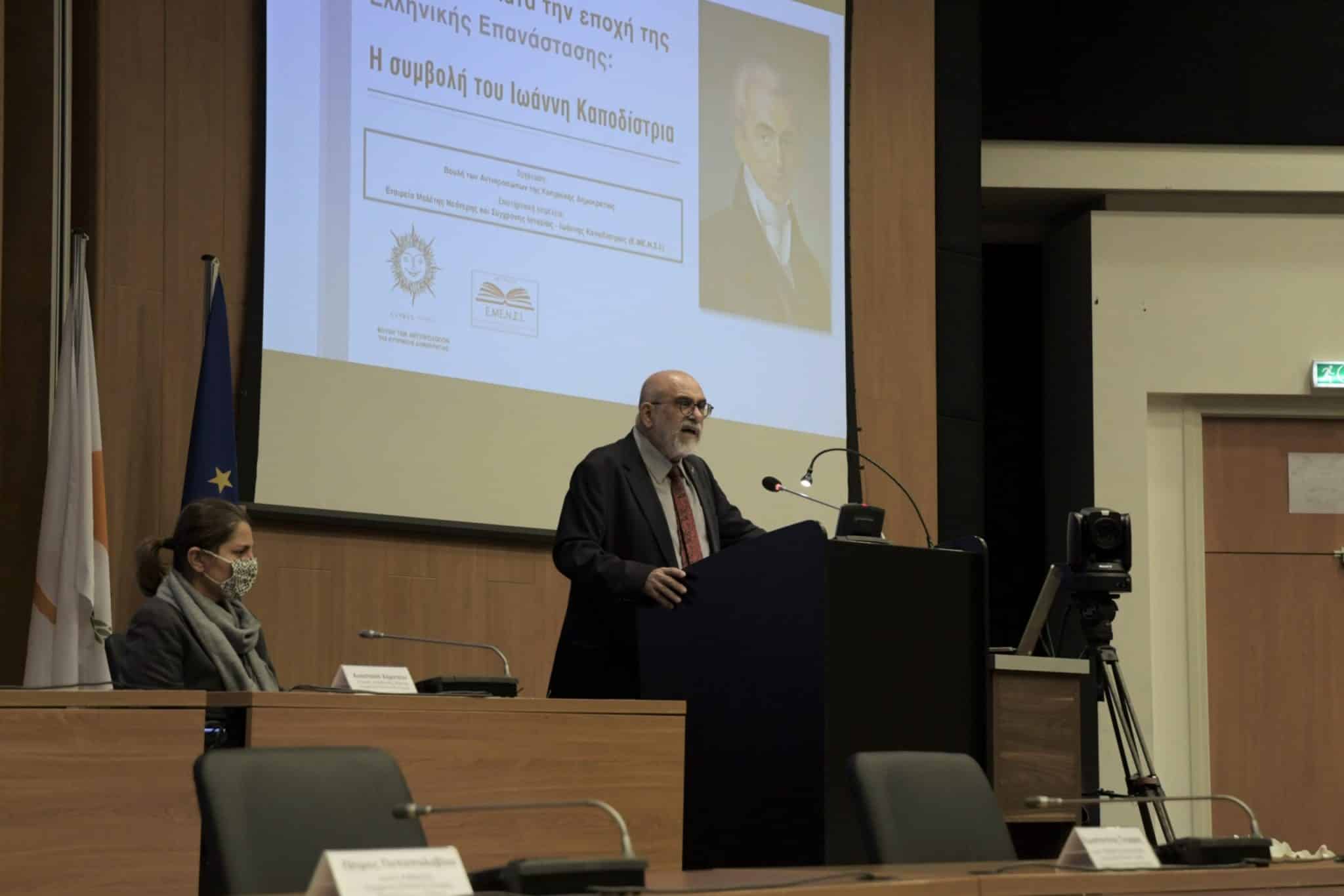 Το θέμα της ομιλίας του κ. Γεωργή ήταν «Η εξωτερική πολιτική του Ιωάννη Καποδίστρια από το 1828 έως το 1831».