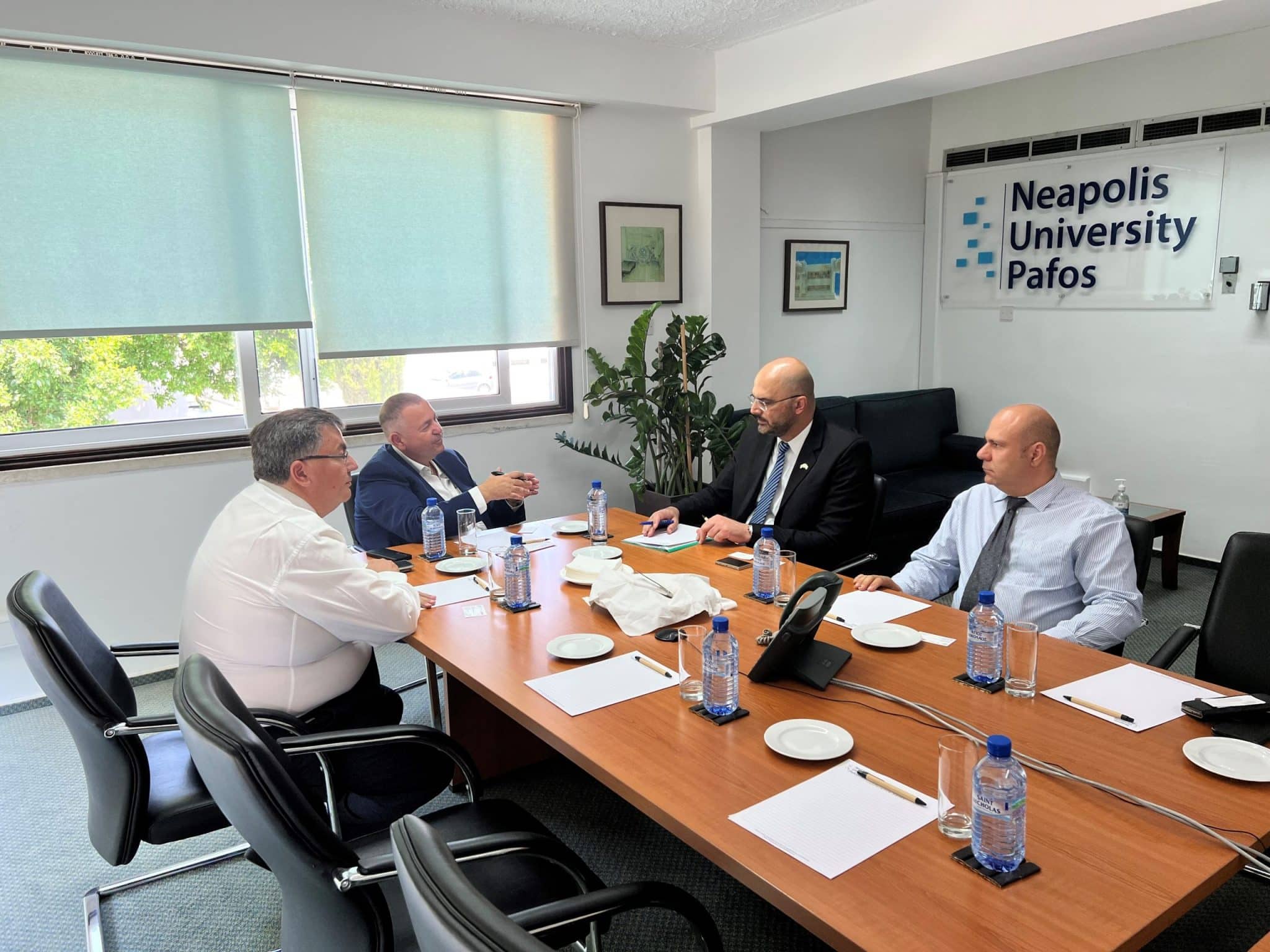 Την Παρασκευή 24.06.2022 πραγματοποιήθηκε στις εγκαταστάσεις του Πανεπιστημίου Νεάπολις Πάφος συνάντηση εργασίας μεταξύ του Πρέσβη του Κράτους του Ισραήλ στην Κυπριακή Δημοκρατία κου Oren Anolik και των Πρυτανικών και Διοικητικών Αρχών του Ιδρύματος, εκπροσωπούμενων από τον κο Παντελή Λεπτό, Αντιπρόεδρο του Δ.Σ του Ιδρύματος και καθ. Παντελή Σκλιά, Πρύτανη.
