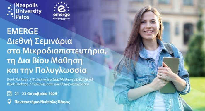 Από τις 21 έως τις 23 Οκτωβρίου 2025, το Πανεπιστήμιο Νεάπολις Πάφος θα φιλοξενήσει τις κοινές εργασίες των Work Package 5 (Ευέλικτη Δια Βίου Μάθηση...