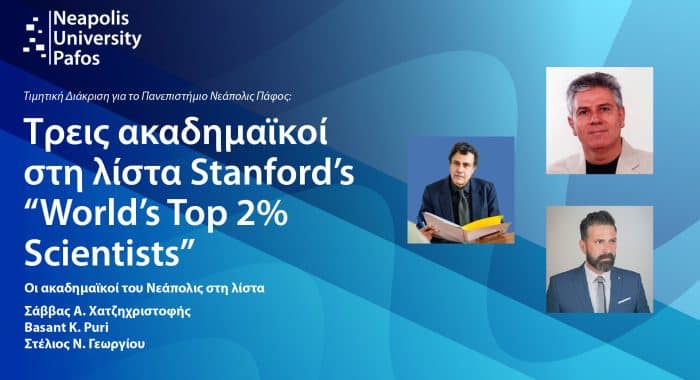 Το Πανεπιστήμιο Νεάπολις Πάφος ανακοινώνει ότι τρεις ακαδημαϊκοί του περιλαμβάνονται στη διεθνώς αναγνωρισμένη λίστα Stanford’s World’s Top 2% Scientists (2025), η οποία συντάσσεται σε συνεργασία...
