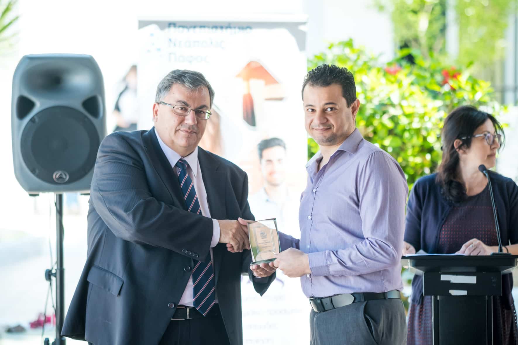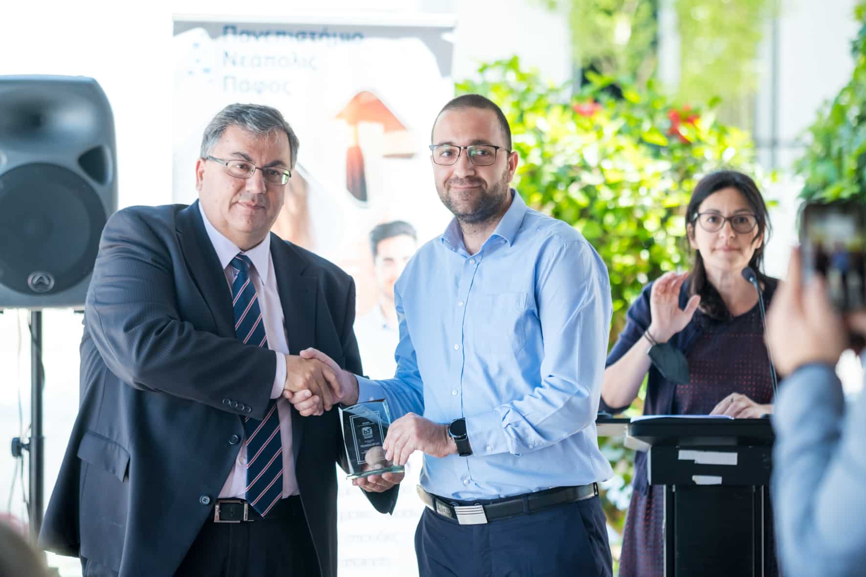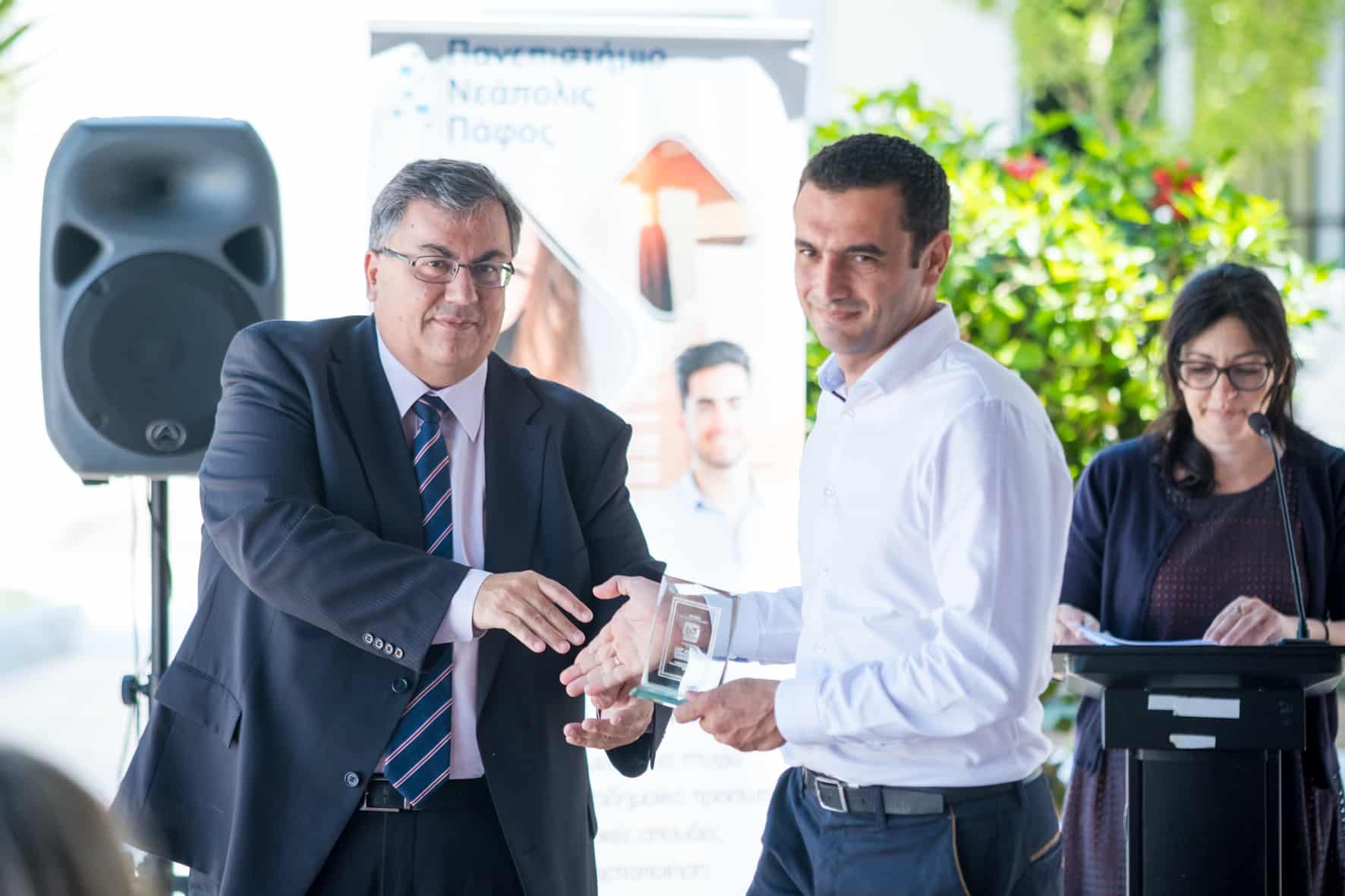 Η βράβευση αποτέλεσε δείγμα ευγνωμοσύνης για τις εταιρείες που στηρίζουν τις δράσεις και το όραμα του Πανεπιστημίου Νεάπολις Πάφος αλλά και τις πρωτοβουλίες του Γραφείου Διασύνδεσης. Στην εκδήλωση απεύθυναν χαιρετισμό ο Πρύτανης του Πανεπιστημίου Νεάπολις Πάφος, Καθ. Παντελής Σκλιας, ο Διαχειριστής του Έργου εκ μέρους του Πανεπιστημίου Κύπρου, κ. Γιώργος Μάγος και η Εκπρόσωπος του Έργου εκ μέρους του Πανεπιστημίου Νεάπολις Πάφος, κα Γεωργία Χρίστου.