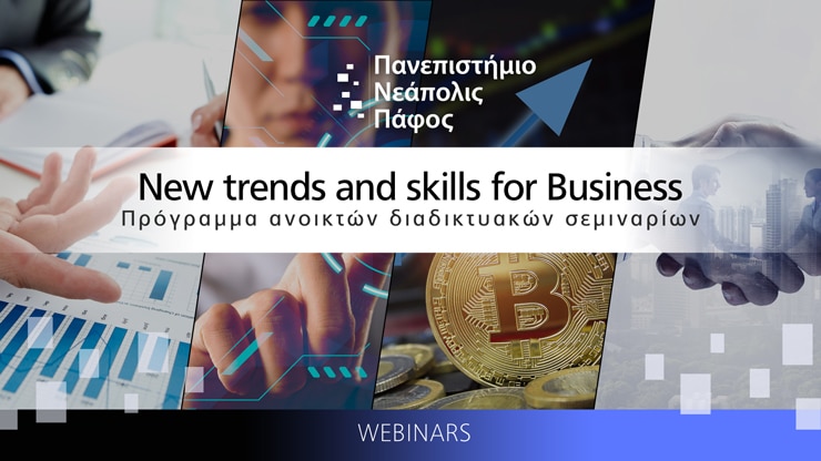 Στο συνεχές εξελισσόμενο οικονομικό και χρηματοοικονομικό περιβάλλον, για να παραμείνουν ανταγωνιστικές και να ανταπεξέλθουν στις καινούριες προκλήσεις, ευκαιρίες και τάσεις που αντιμετωπίζουν οι επιχειρήσεις, καλούνται να διαμορφώσουν ανάλογα τον σχεδιασμό τους. Σχεδιασμό, που έχει να κάνει με διάφορους τομείς, όπως η χρηματοδότηση, το marketing και η διαχείριση ανθρωπίνων πόρων. Κάτω από αυτό το πρίσμα η διαδικτυακή σειρά σεμιναρίων που οργανώνει η Σχολή Οικονομικών, Διοίκησης και Πληροφορικής του Πανεπιστημίου Νεάπολις Πάφου, αναλύει τις διάφορες τάσεις στην χρηματοδότηση των επιχειρήσεων, όπως είναι η αποκεντρωμένη χρηματοδότηση βασισμένη στην χρηματοοικονομική τεχνολογία (FinTech). Επίσης παρουσιάζονται τα προσόντα και ικανότητες που πρέπει να κατέχουν οι εργαζόμενοι, και αναλύονται τα καινοτόμα μέσα στην προώθηση προϊόντων. Κατά συνέπεια, στο καινούριο περιβάλλον που διαμορφώνεται παρέχονται νέες οδούς για την επιχειρηματικότητα και δημιουργούνται ευκαιρίες για παγκόσμια ανάπτυξη.