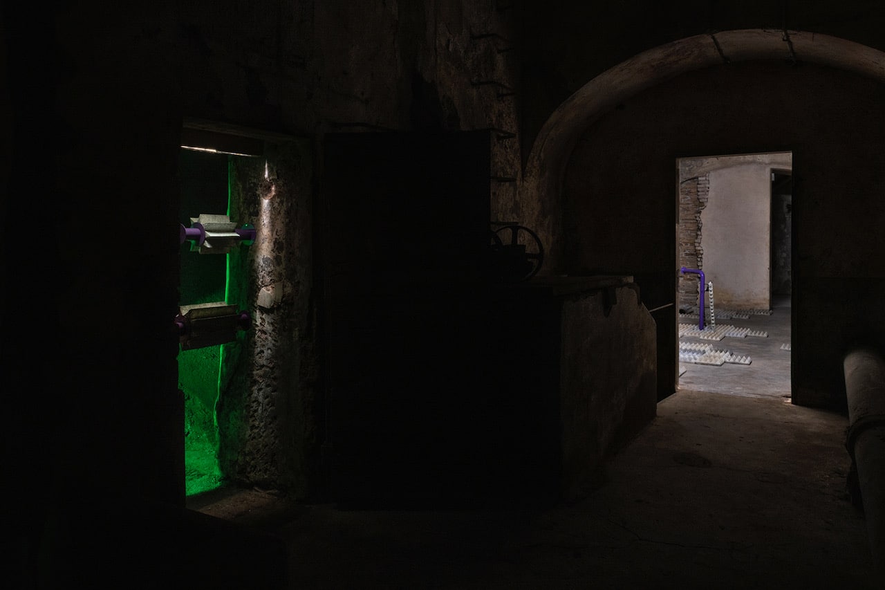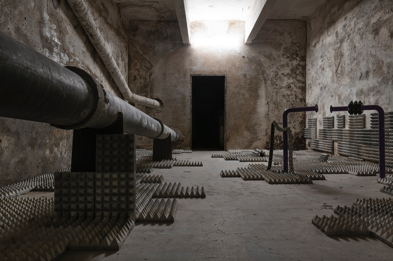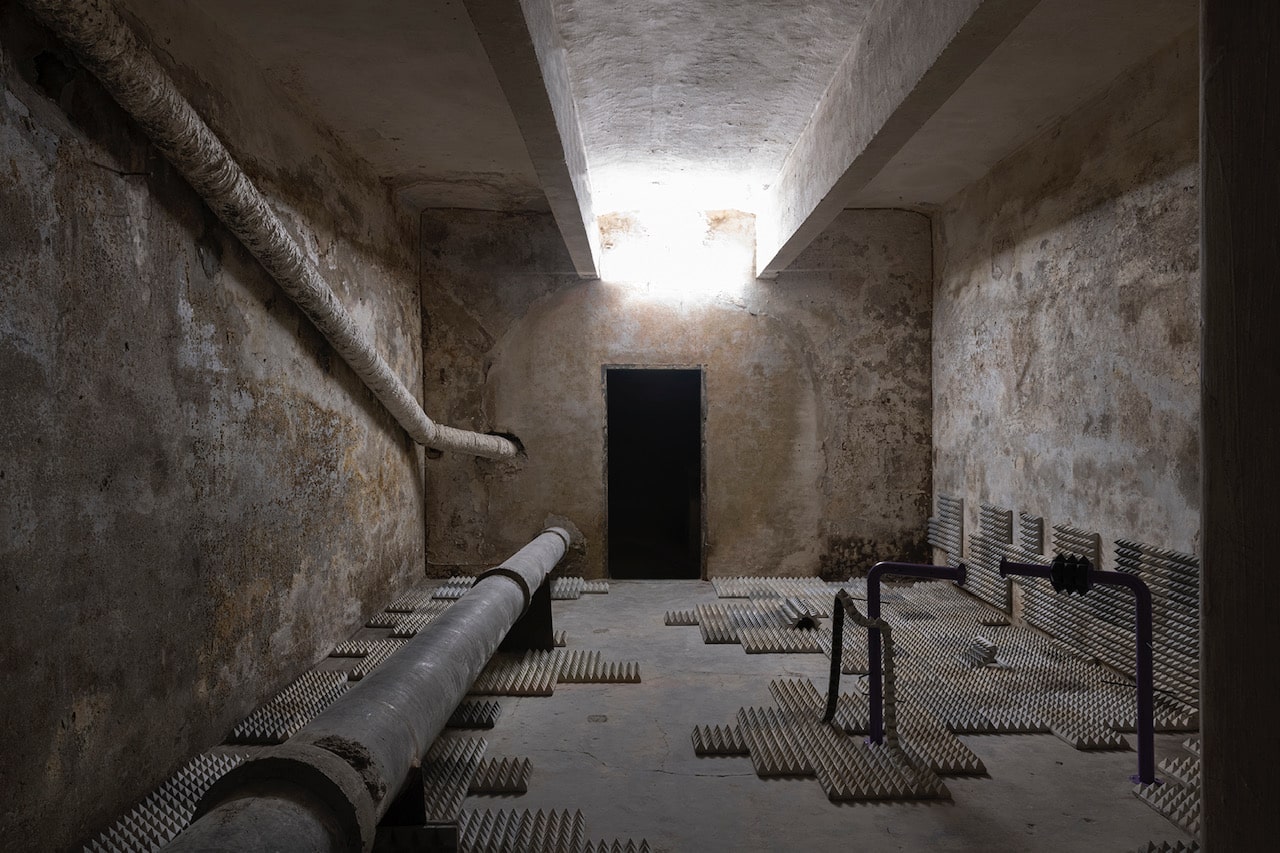 The project – conceived for Spazio Molini as a site-specific intervention – investigates the apparent familiarity of the motifs and patterns of public space, activating a critical enquiry into the theme of hostile architecture, understood as an expression of a “paranoid and anxious” (Robert Park) design that conflicts with the bodily experience of individuals in urban space, compromising their personal and political freedoms.